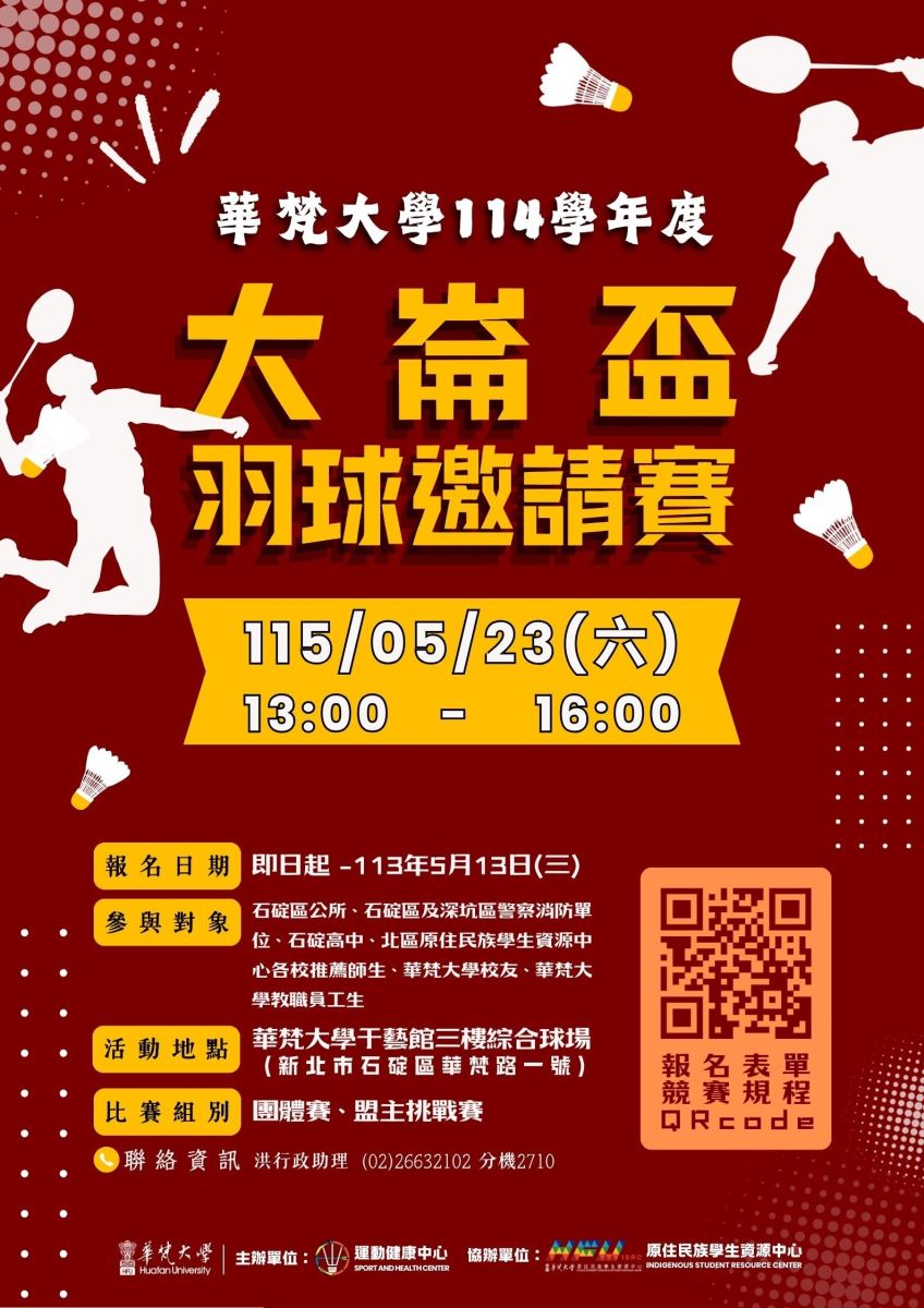 🏸 【115-2 大崙盃羽球邀請賽】開始報名!歡迎校友報名參加 🏸