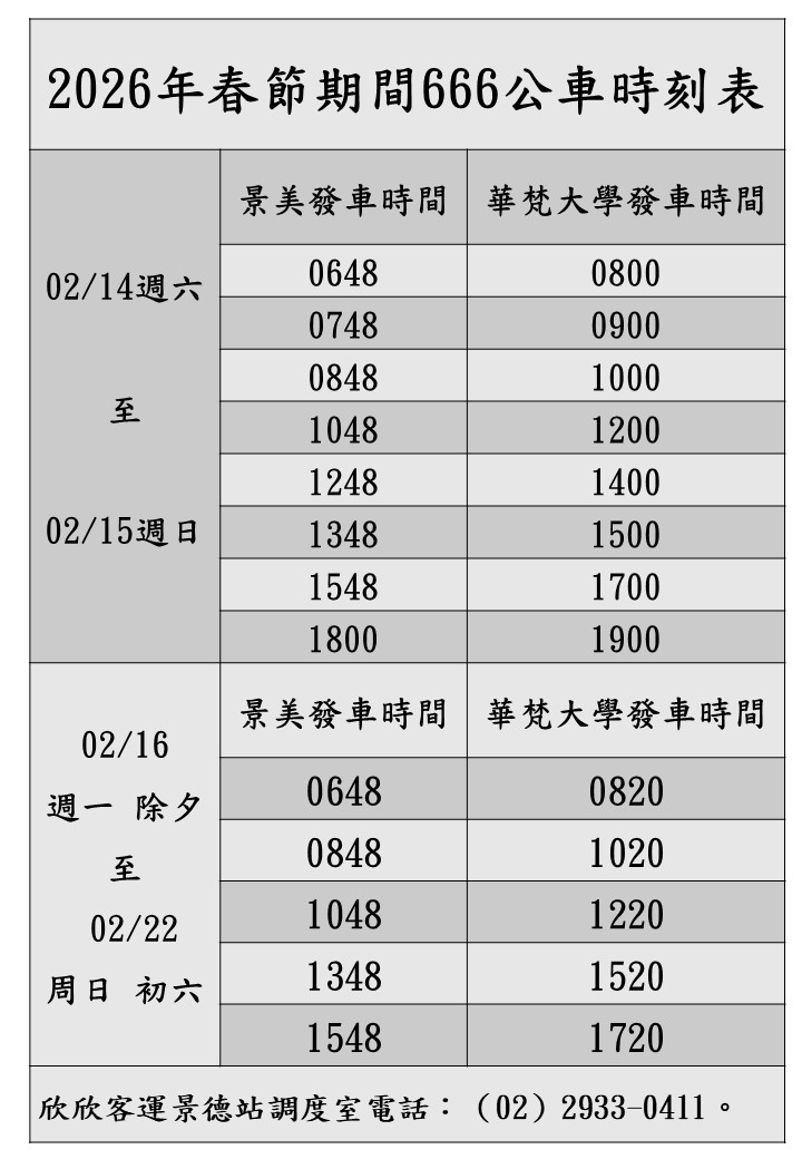 ❋2026年春節期間666公車時刻表 ⬇️